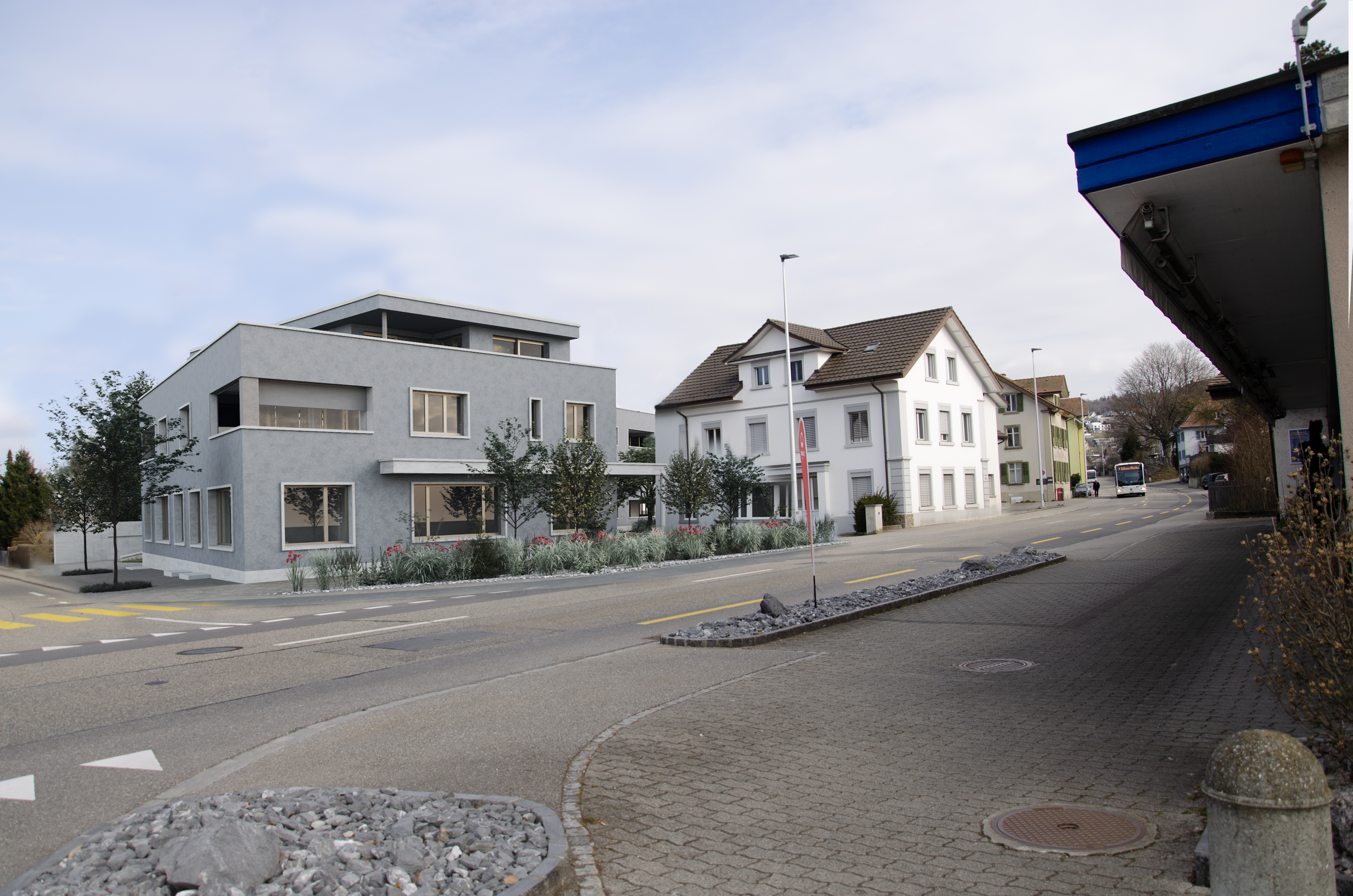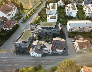 Die Bebauung liegt nördlich der Altstadt von Zofingen, angrenzend an ein ruhiges Wohnquartier, entlang der Verbindungsstrasse nach Mühlethal. (Frohburgstrasse/Ecke Mühlethalstrasse, Zofingen)